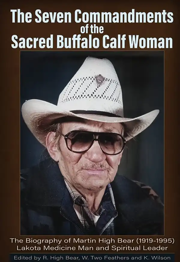 The Seven Commandments of the Sacred Buffalo Calf Woman: Martin High Bear (1919–1995) includes his life story, the history of his family, and the vision of the Seven Commandments, or Seven Teachings, or Seven Ways. These teachings were recited to him in his vision quest altar in the mid 1970’s shortly after he became a medicine man. The set of traditional cultural values and rich spiritual qualities were gifted to him along with special messages of race reconciliation for strengthening healing and hope. The instructions clarified that the teachings be shared with not just his own Native American people but also the peoples of the four colors because it is needed in today’s increasingly complicated world.